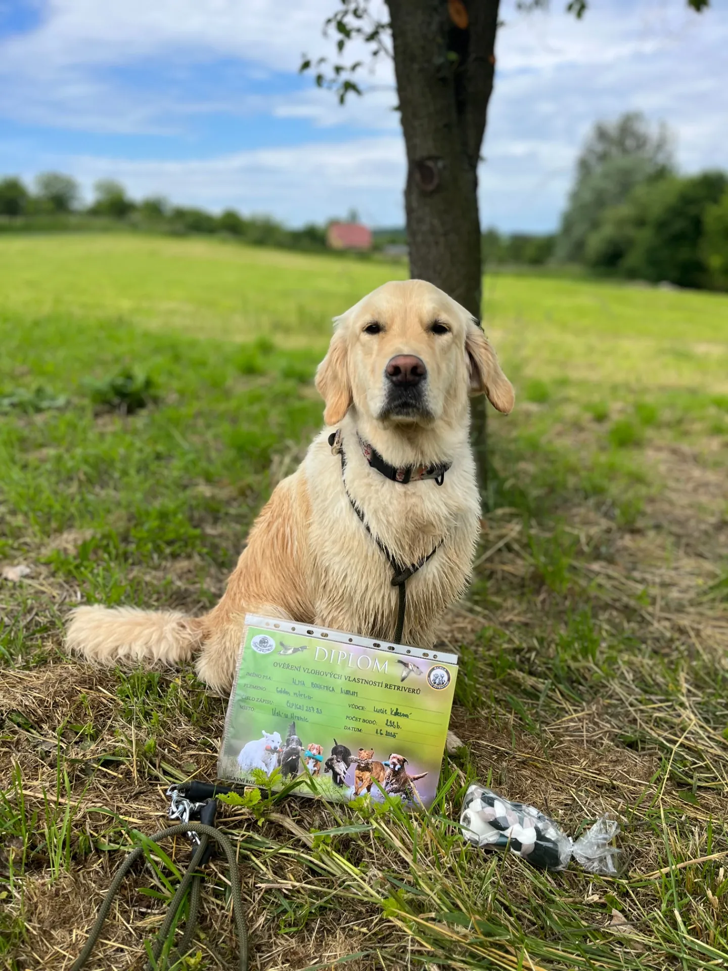V neděli 1. června 2025, na Den dětí, jsme s Alminkou vyrazily na naši první velkou zkoušku – OVVR (ověření vrozených vloh retrivrů) v Ústí u Hranic. Počasí bylo příznivé se sluncem a skvělou náladou. Sešlo se deset psů s jejich majiteli, mnozí známí z tréninků. A aby toho nebylo málo – zkoušek se účastnily i dvě naše trenérky!
