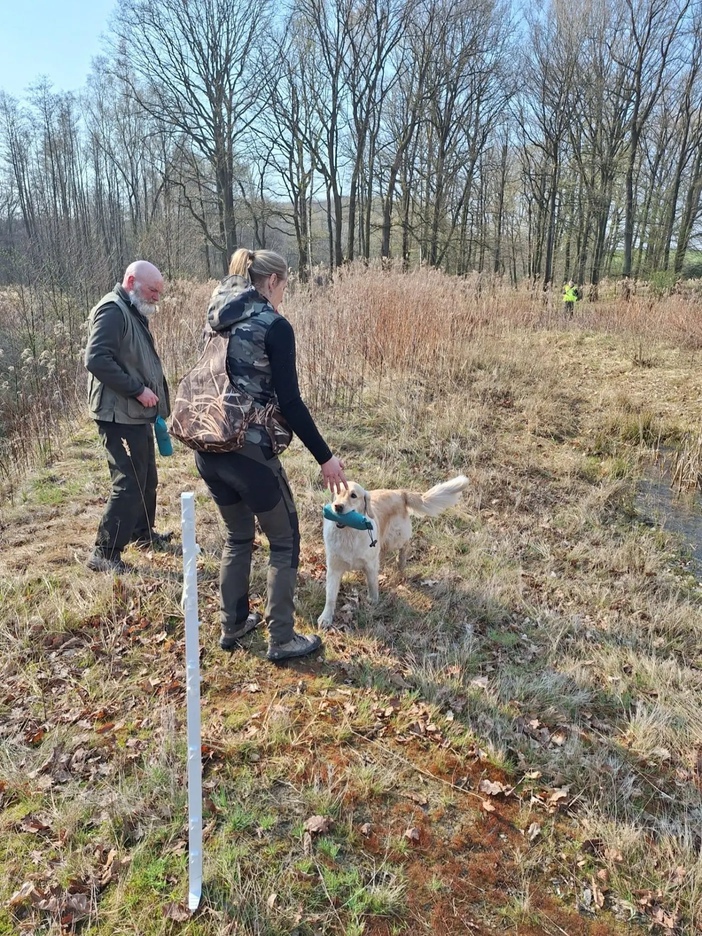 Ve třídě E nás čekaly čtyři disciplíny zaměřené na marking, memory marking a dohledávku – průběžně se hodnotila i chůze u nohy. Jenže hned u první disciplíny nás terén dostal. Alma dummy po vběhnutí do 2 příkopů ztratila orientaci a dummy nemohla najít – a frustrace se projevila po svém. Zkrátka se vyčurala. No, stalo se a výsledek rovná 0.