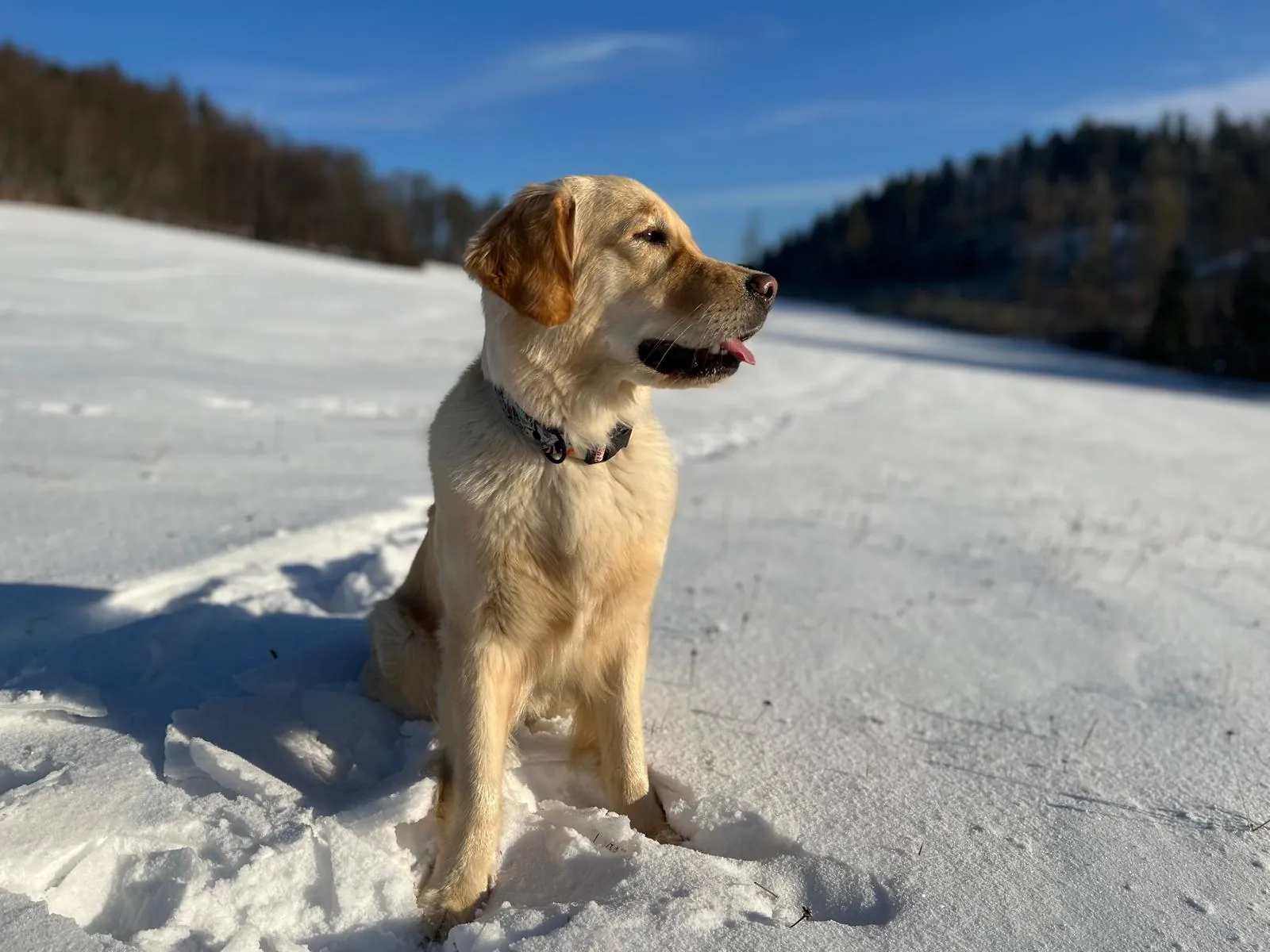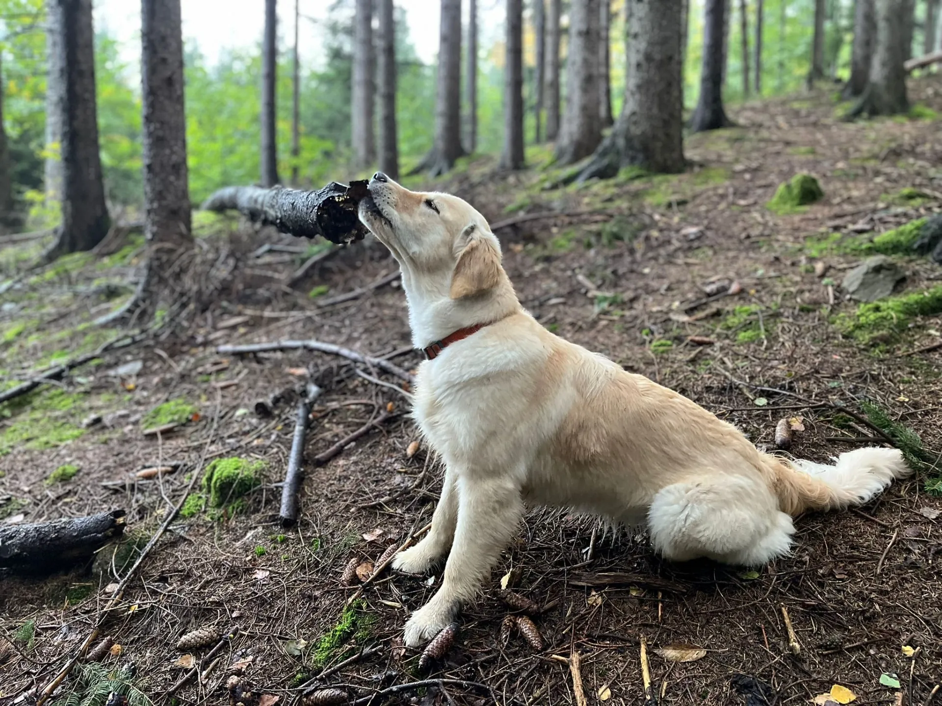 Alminka je naše vysněná fenka zlatého retrívra. Do života k nám přišla jako velká voda a velmi rychle se stala parťačkou pro každou situaci – výlety, dovolené, sport i klidné večery doma.